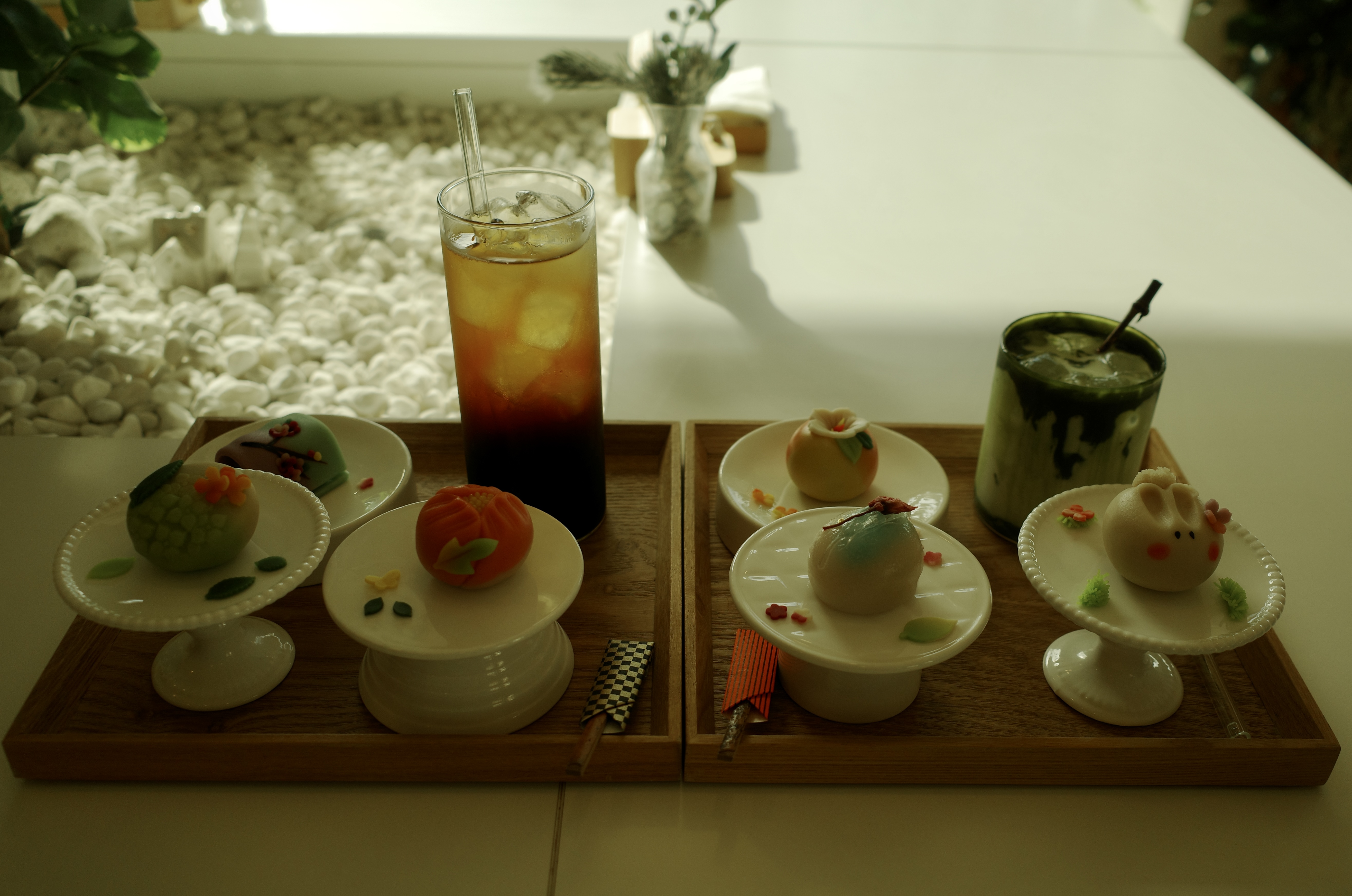 말차 라떼와 콜드 브류 그리고 그날 있던 화과자를 종류별로 하나씩 다 시켰다.