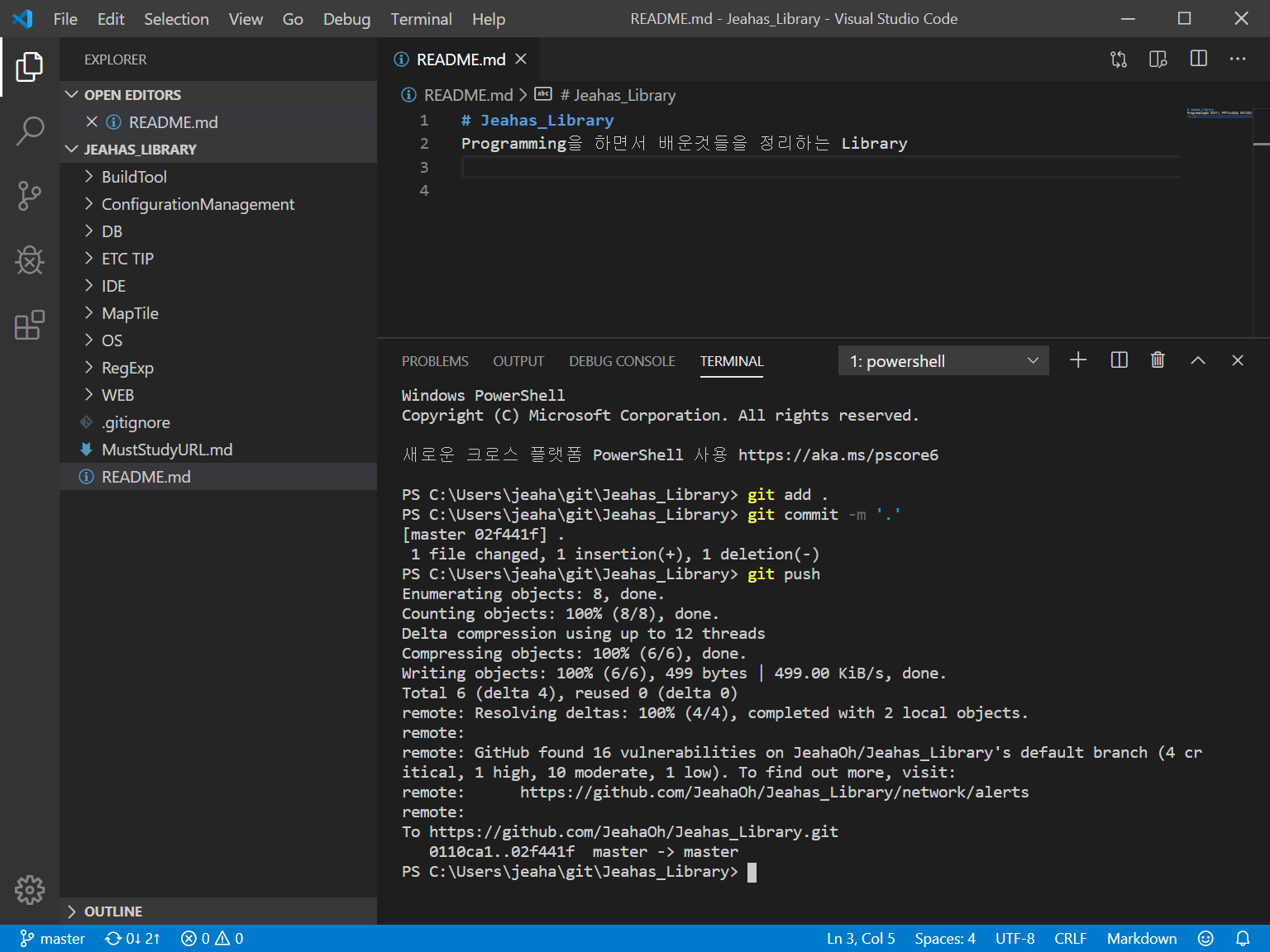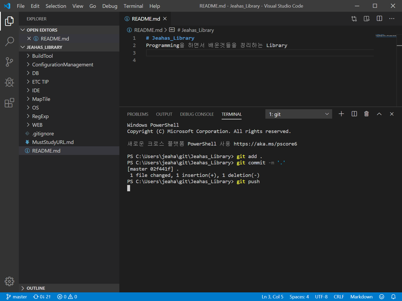 - 간단한 수정 후 commit 시도