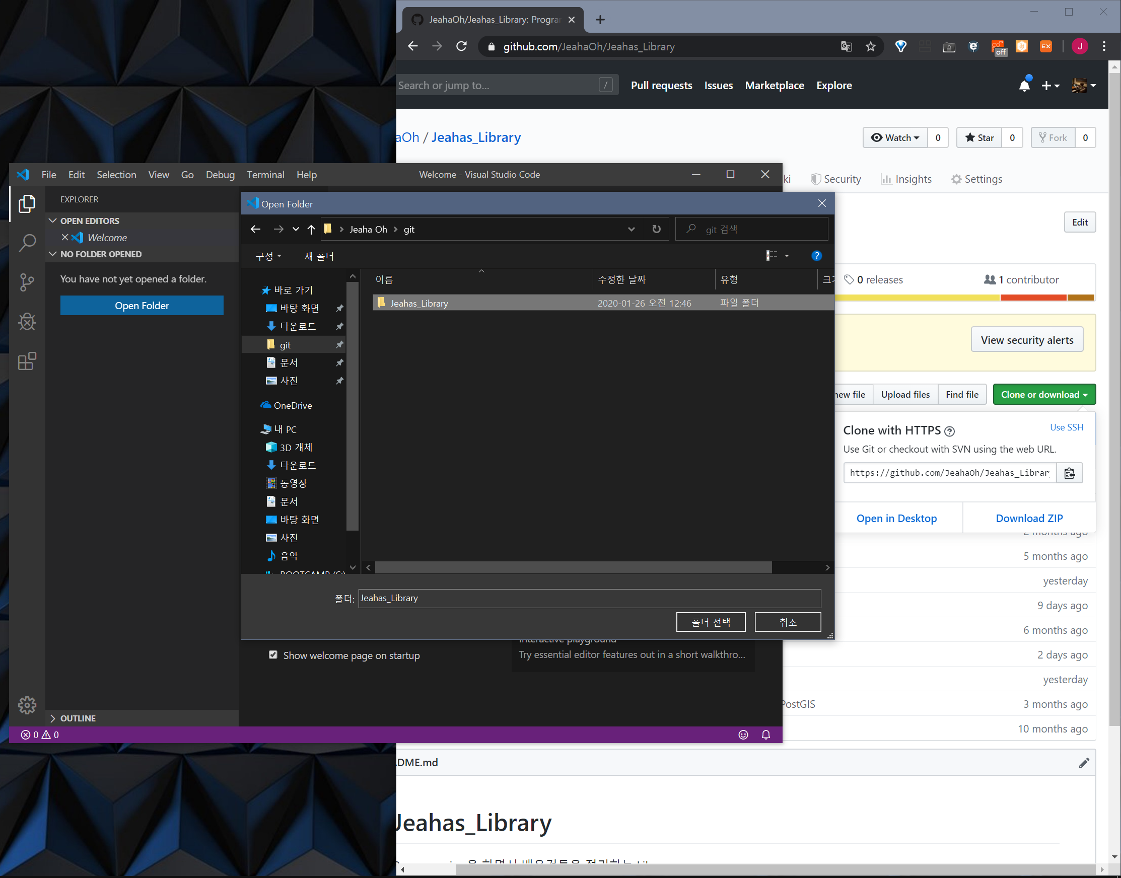 - clone 한 repository open