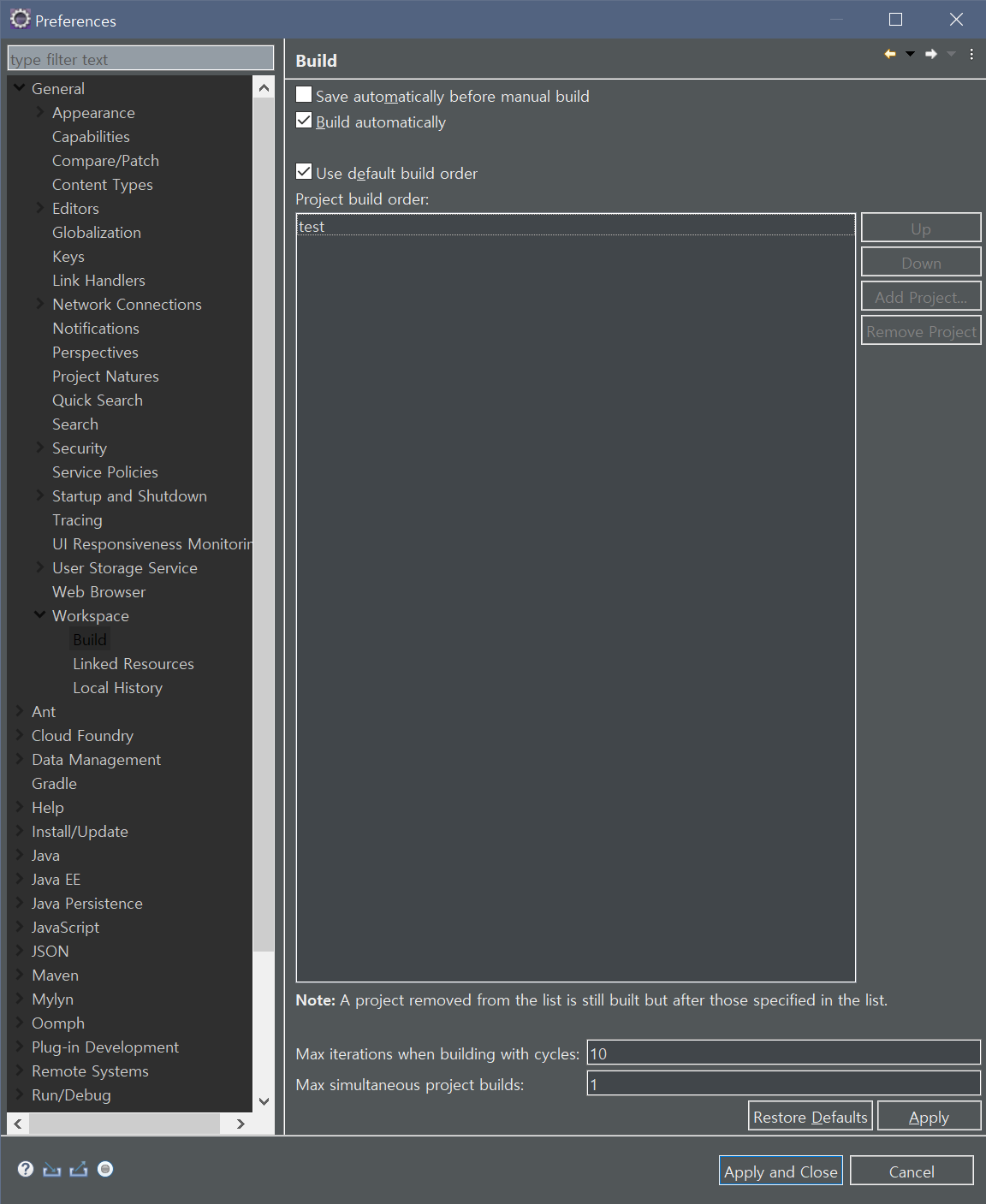 Windows > Preferences > General > Workspace > Build Automatically체크 해제.- BUT 이 설정은 Spring Project를 진행할 때 없으면 귀찮아 지므로 해제하지 않는다.