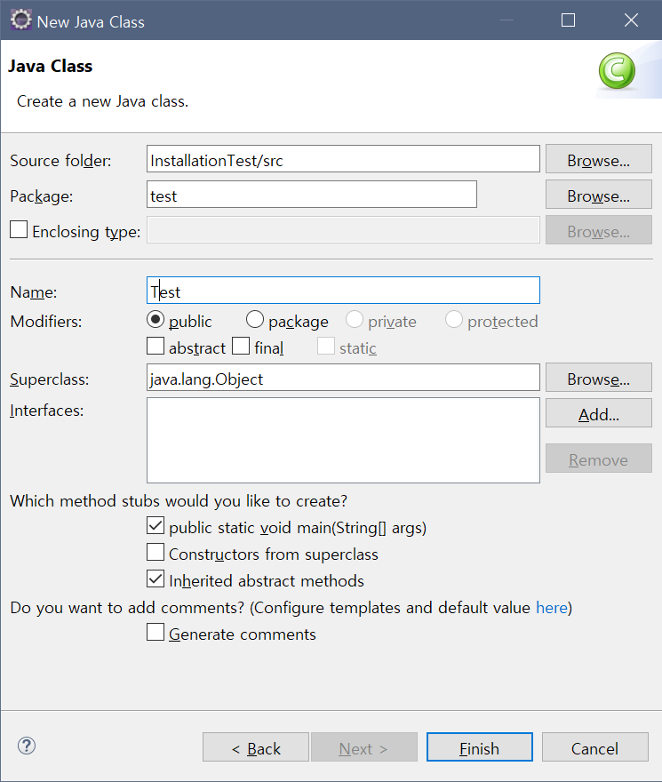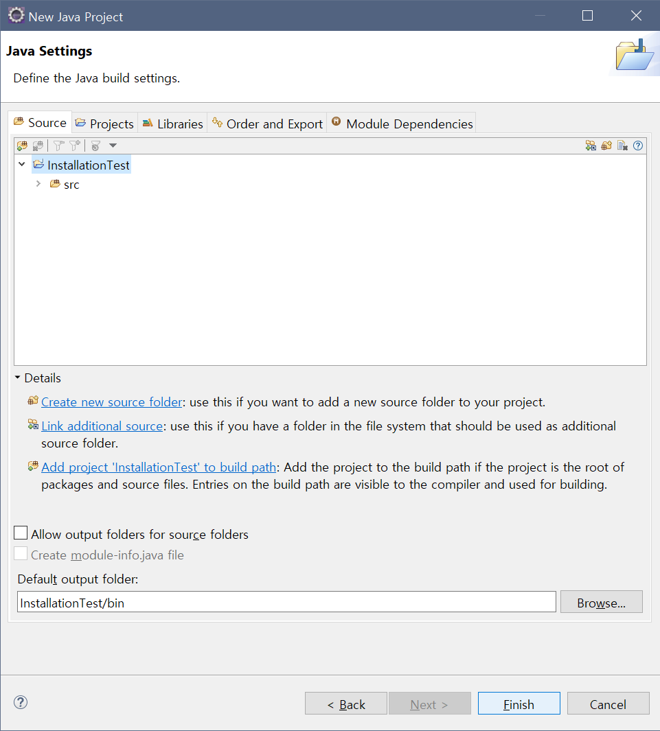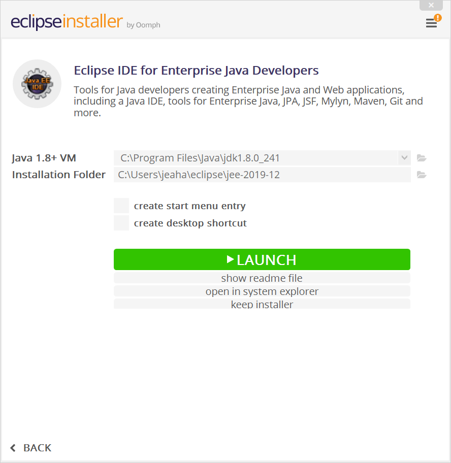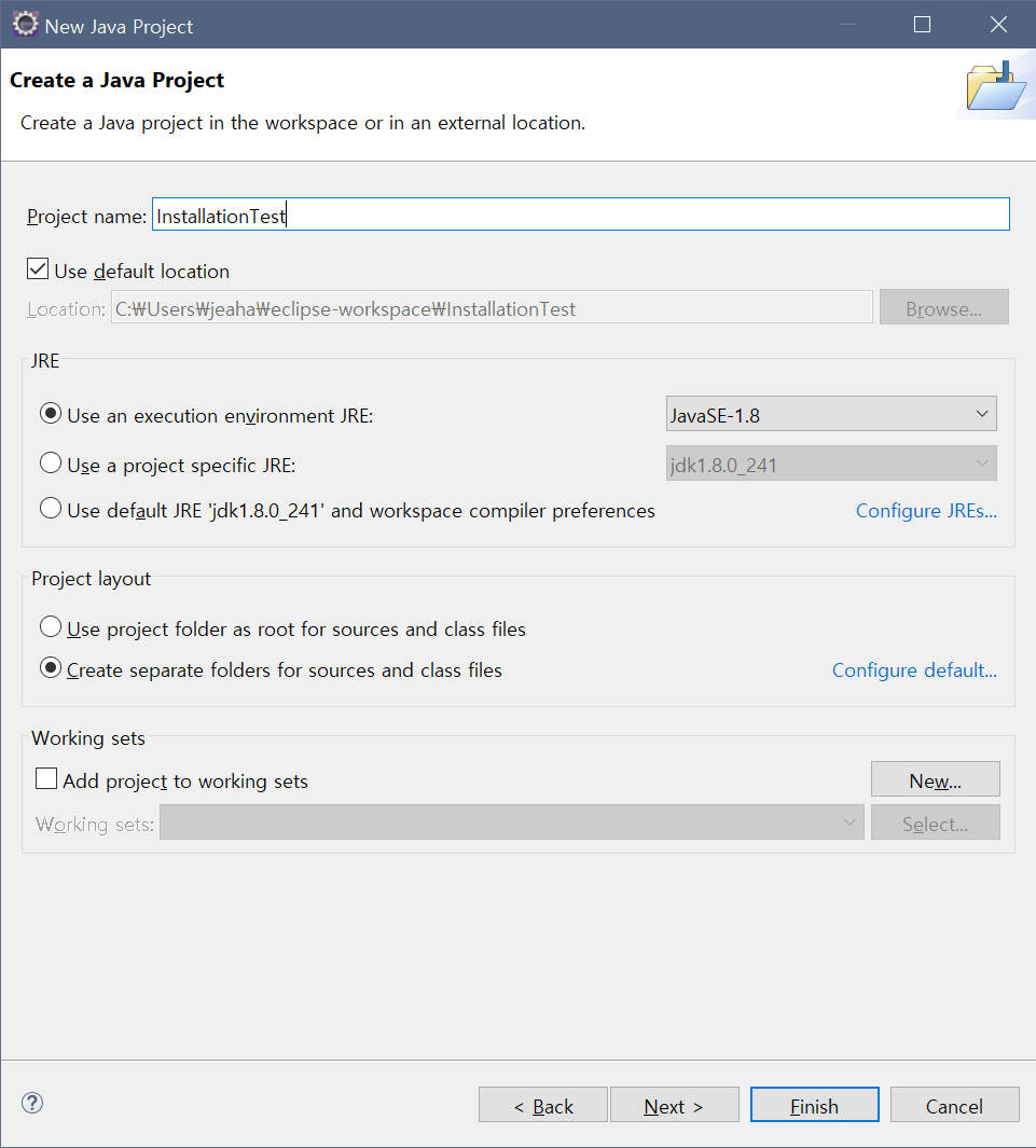 - jdk의 경로를 직접 지정. 보통은 신경 쓸 필요는 없으나 jdk를 여러개 설치하고 작업한다면 직접 위치를 지정하여 사용할 수 있음.