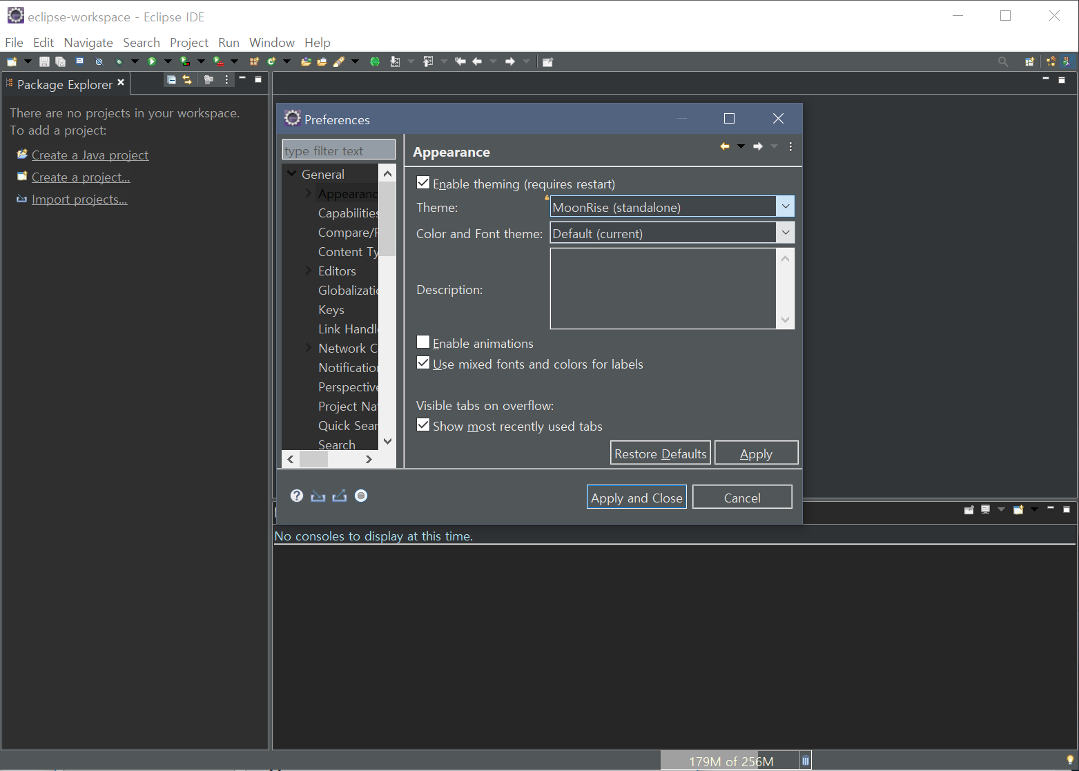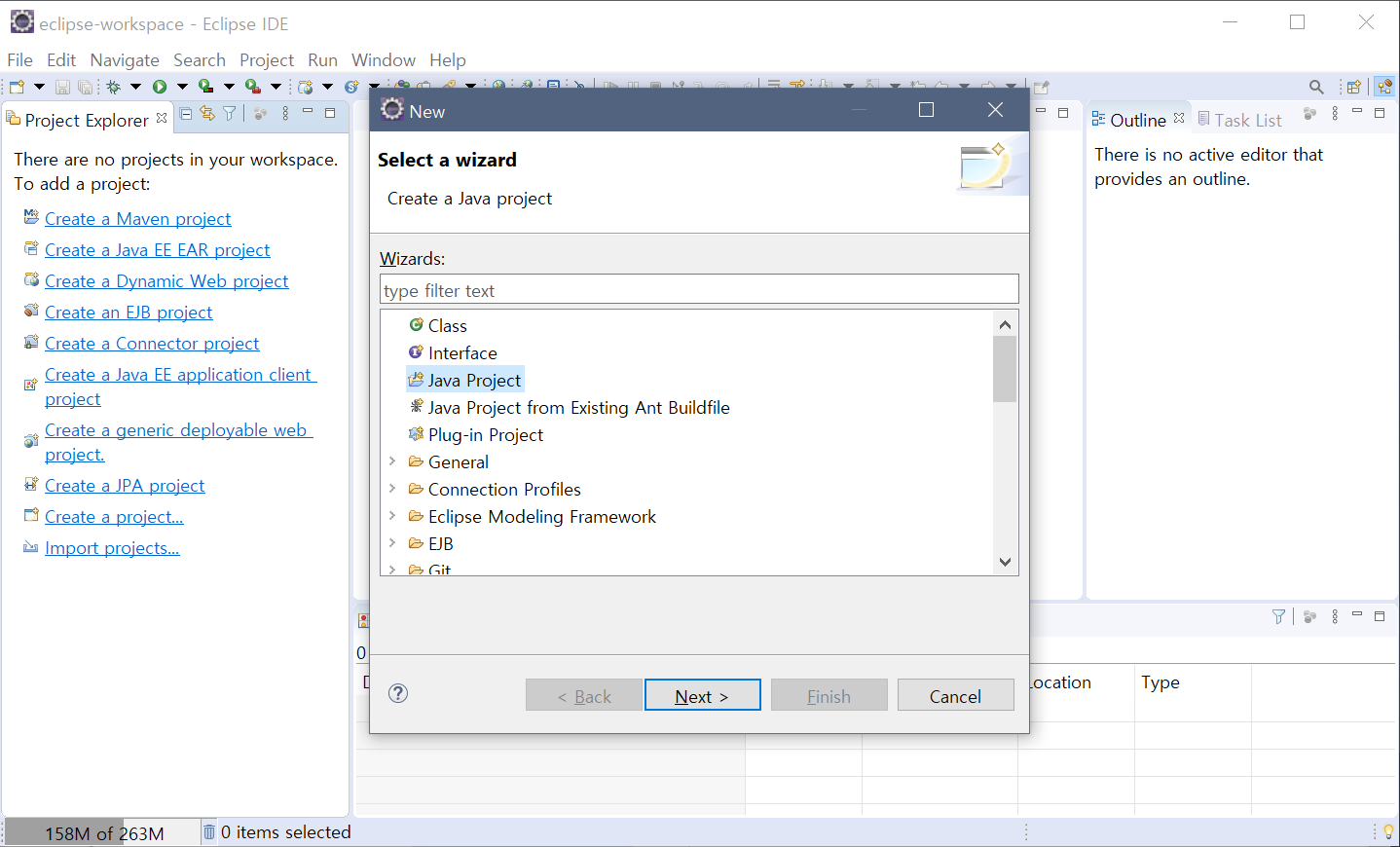 - 이클립스가 사용하는 최대 Heap 메모리 크기, 보통 내장된 메모리의 4분의 1을 최대 Heap 메모리로 설정하여 사용.