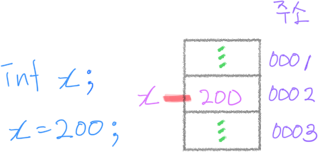 - 할당된 기억공간은 주소(번지)가 부여되어 있음.
