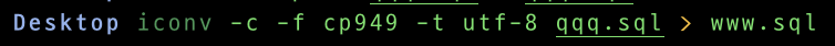 CP-949에서 UTF-8로 인코딩을 변경하는 것은 터미널에서 간단하게 처리 할 수 있다.