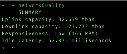 맥 터미널에서 명령어 하나로 간단하게 인터넷 속도를 측정할 수 있다.