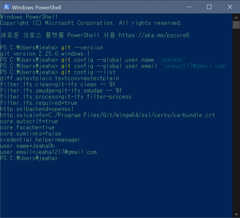 git user name과 user email 설정 파일을 각각 생성 수정한다