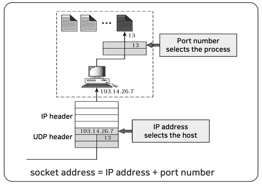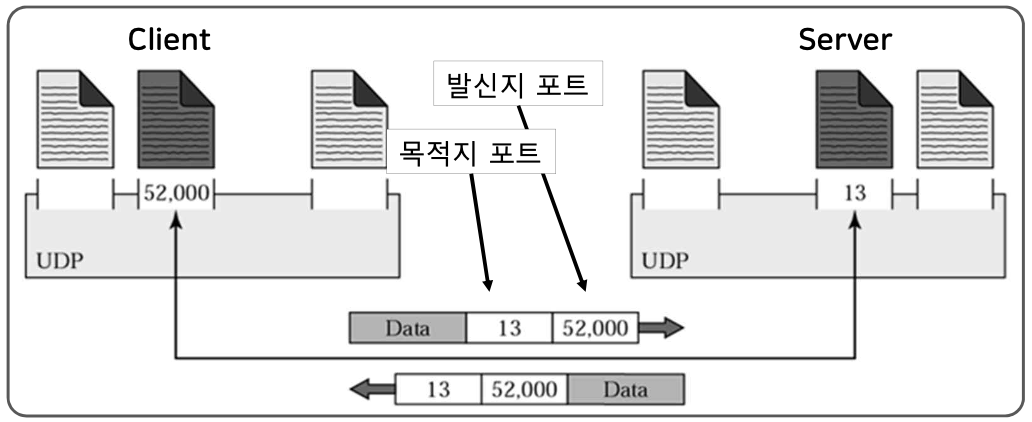 - 기본적인 IP 데이터 전달 서비스에 프로세스 간 통신이 추가된 형태