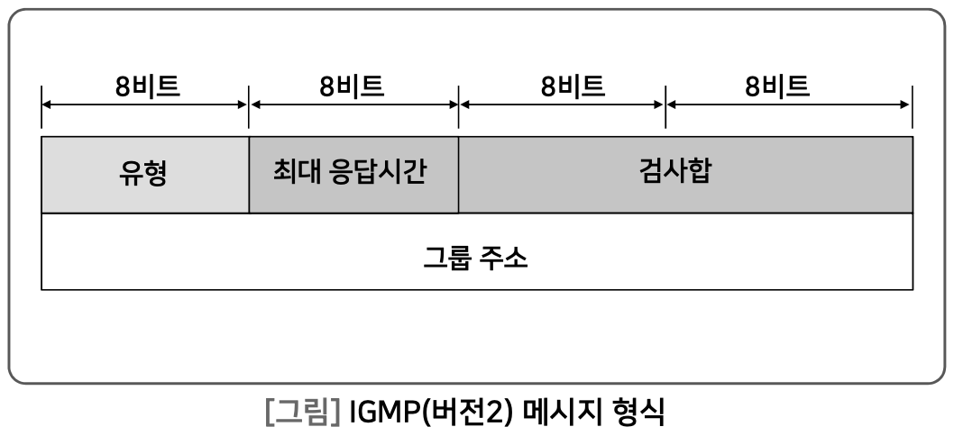 - IGMP는 인터넷에서 동일한 그룹에 속한 호스트들에게 메세지를 전송할 수 있는 멀티캐스트를 위해 사용되는 프로토콜임