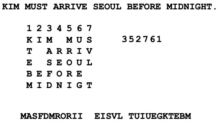 - 평문의 글자를 재배열하는 방식 (문자의 위치를 바꿔 암호문을 작성)