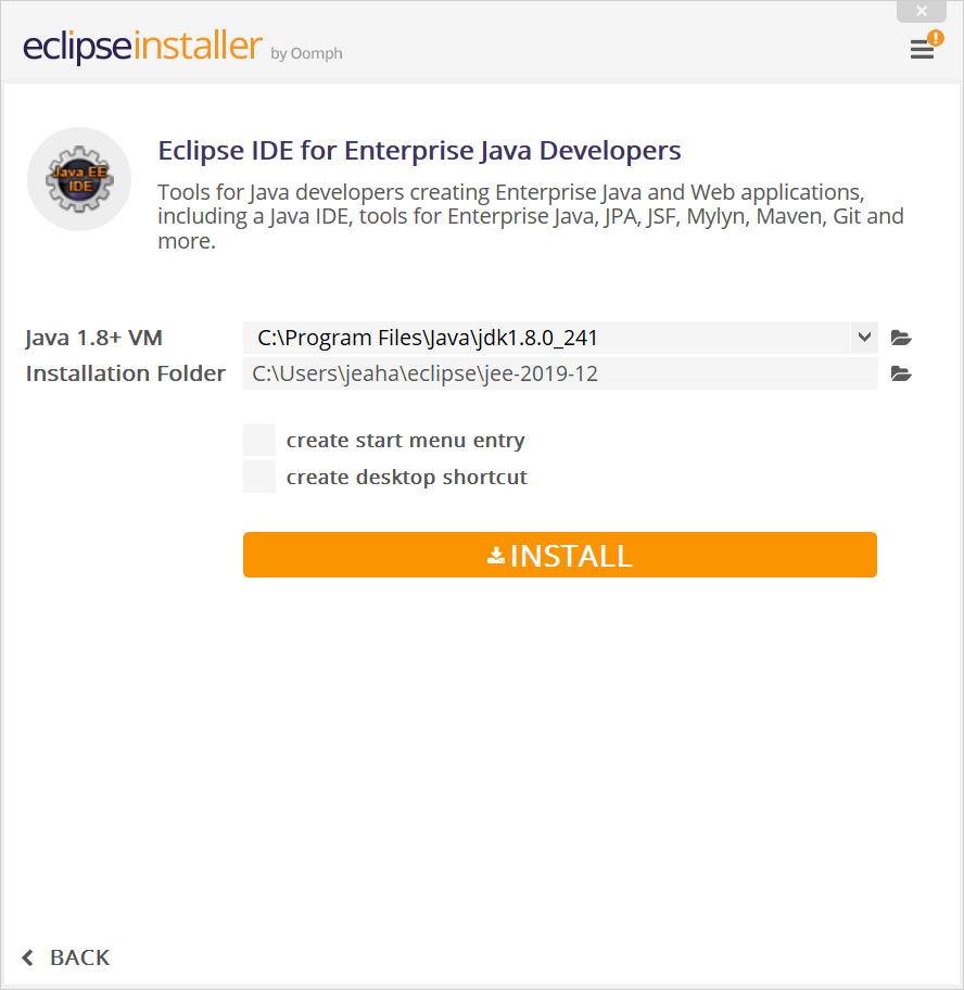 선택에서 JRE가 아닌 JDK 선택.Installation Folder