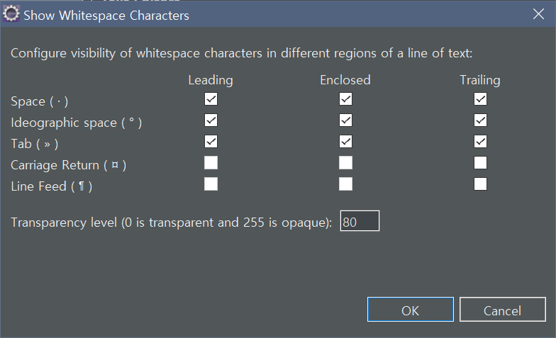 - Show Whitespace Characters 체크.