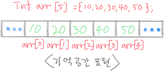 int arr[4]; // -> 반드시 배열의 크기를 지정해야 함. arr[0] = 10; arr[1] = 20; arr[2] = 30; arr[3] = 40;