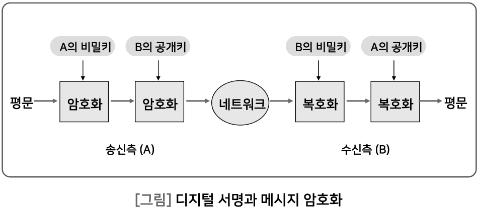 - 공개 키 암호화 방식에서의 메세지 암호화는