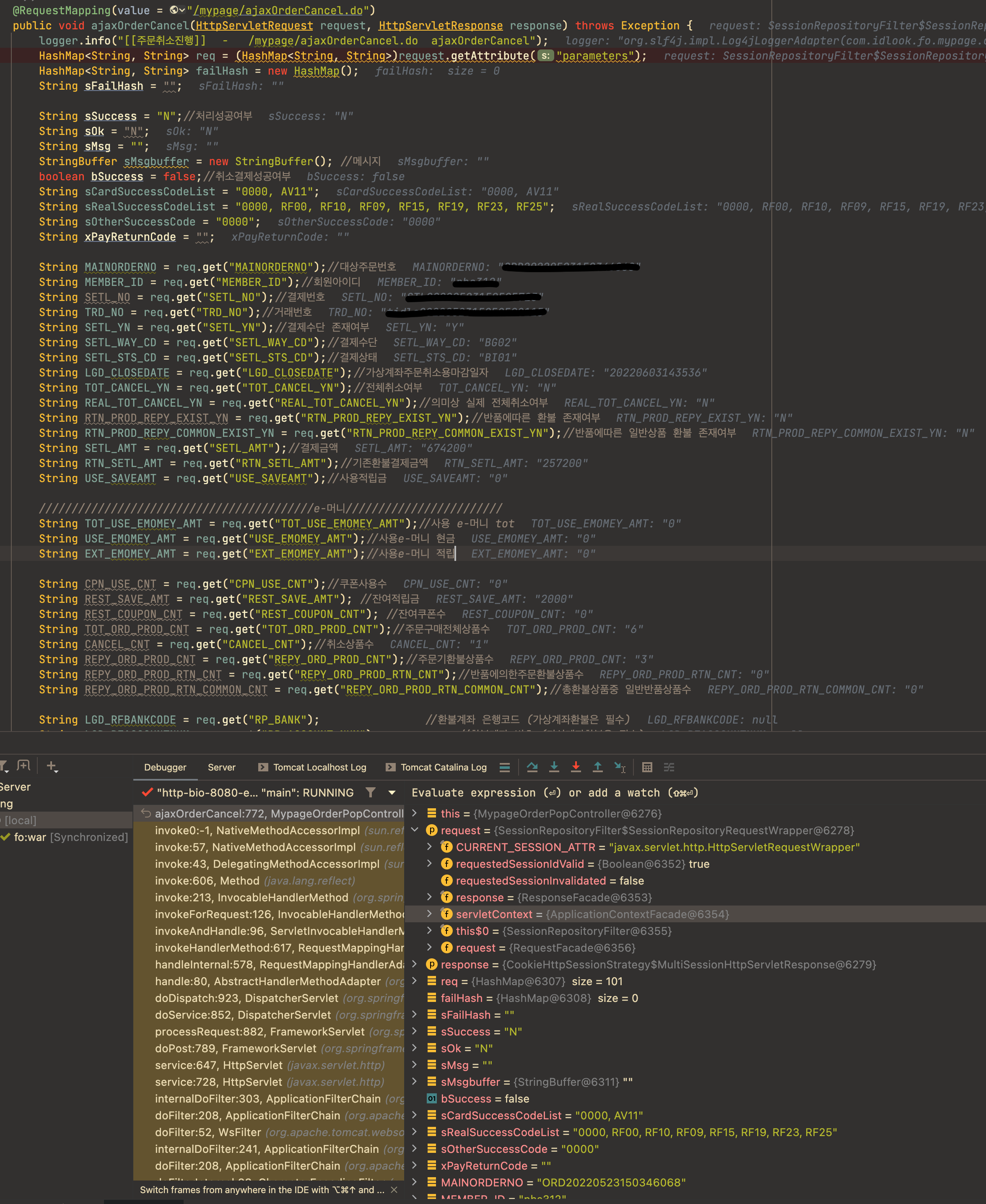 - 현재 프로세스는 <step 2> 와 같고 주문 취소 요청 시 JSP에 뿌려진 주문/결제 값으로 환불요청을 시작한다